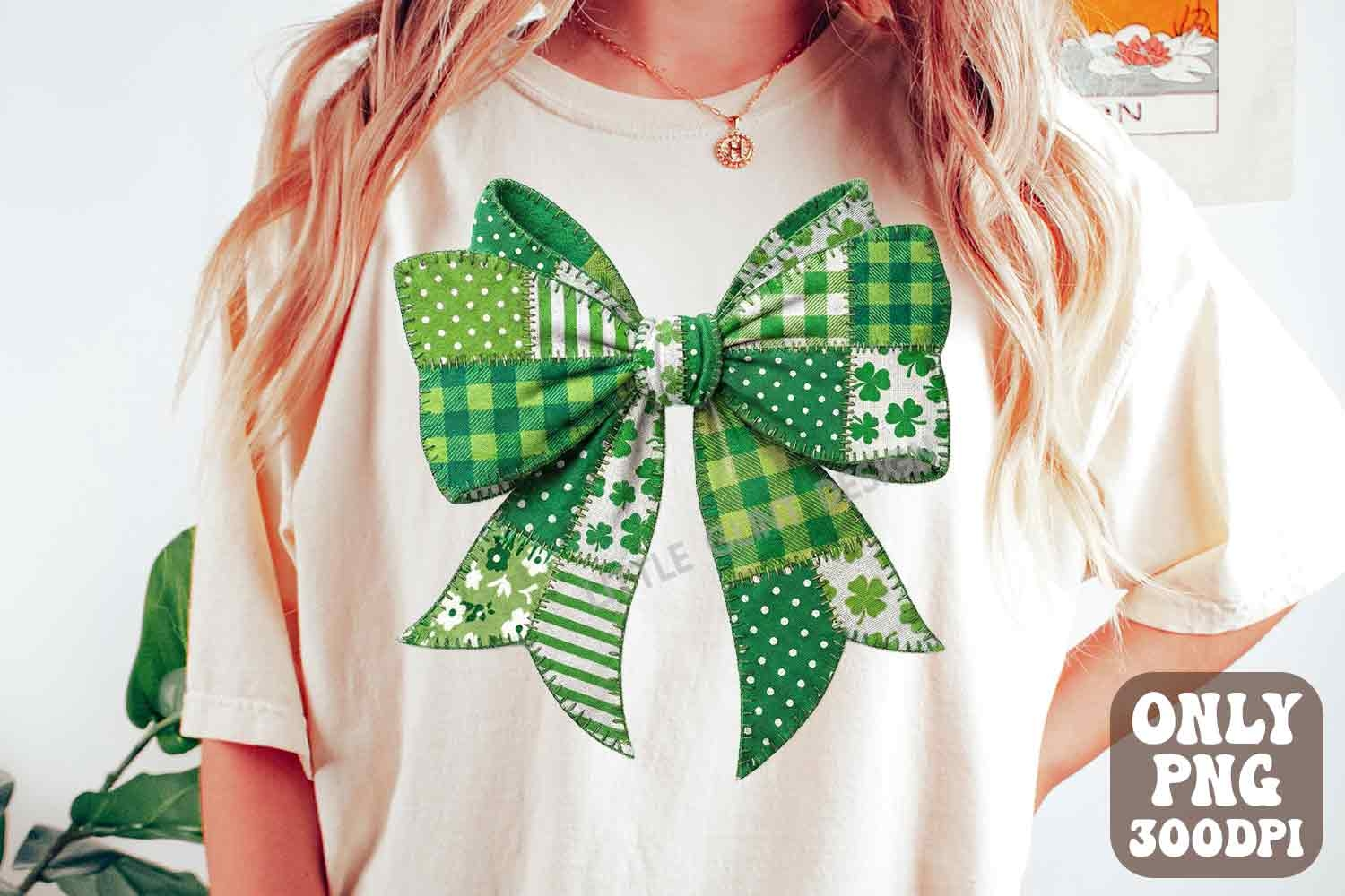 Patchwork St. Patricks Day Coquette Bow Shamrock PNG Design example image 1