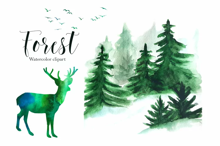 Hand Painted Watercolor Clipart – Forest clipart