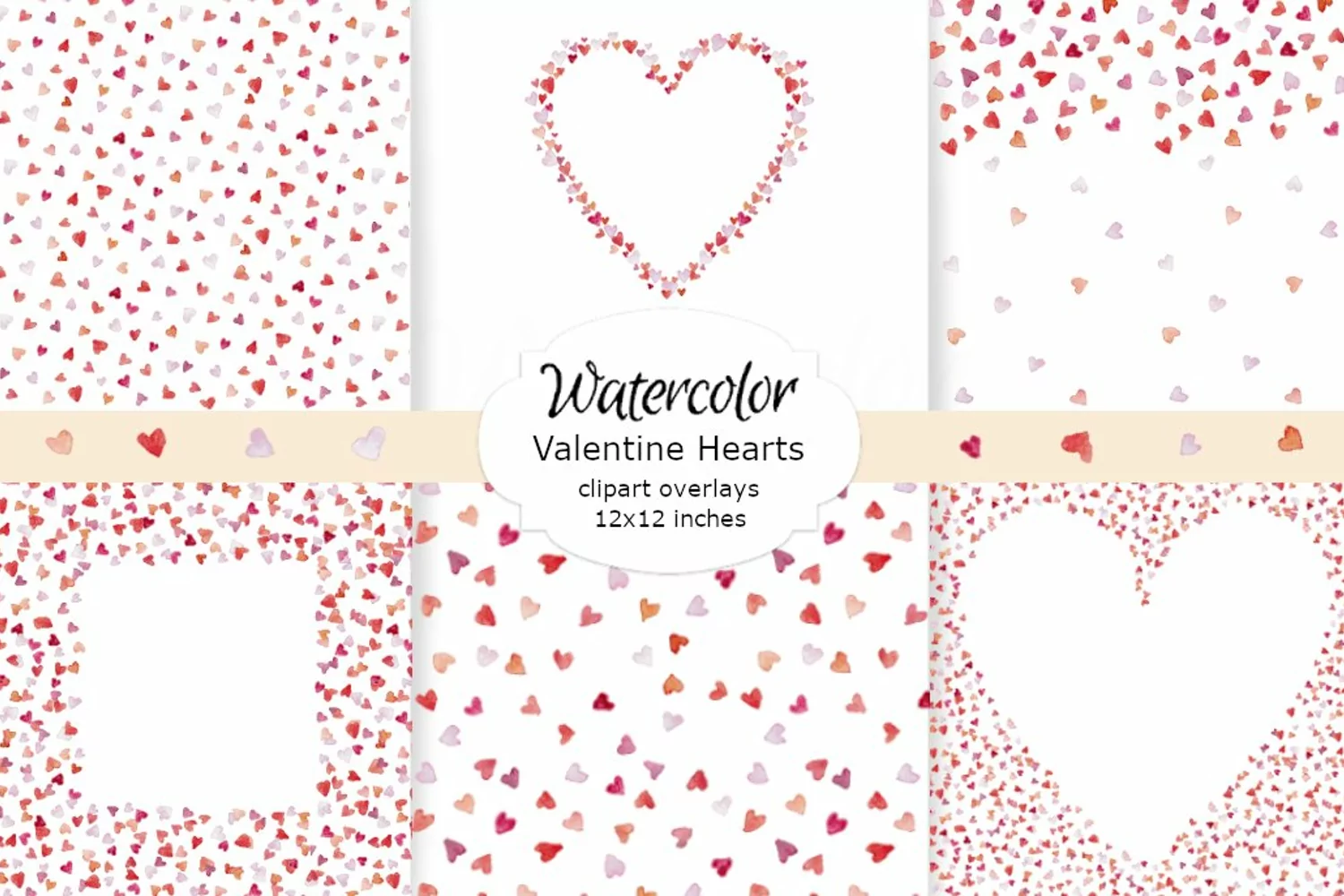 WATERCOLOR CLIPART 12x12 inches valentines hearts clipart