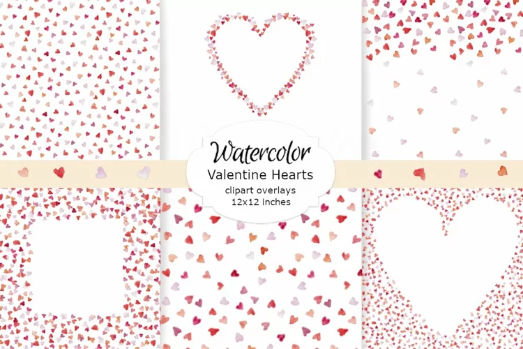 WATERCOLOR CLIPART 12x12 inches valentines hearts clipart example image 1