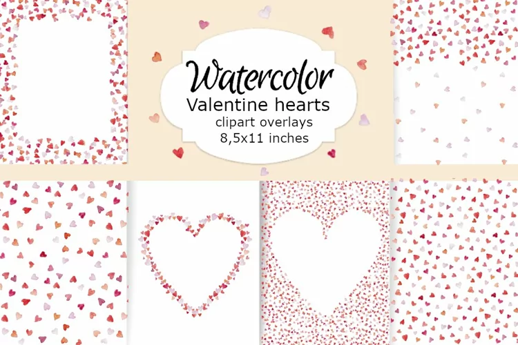 WATERCOLOR CLIPART 8x11.5 inches valentines hearts clipart