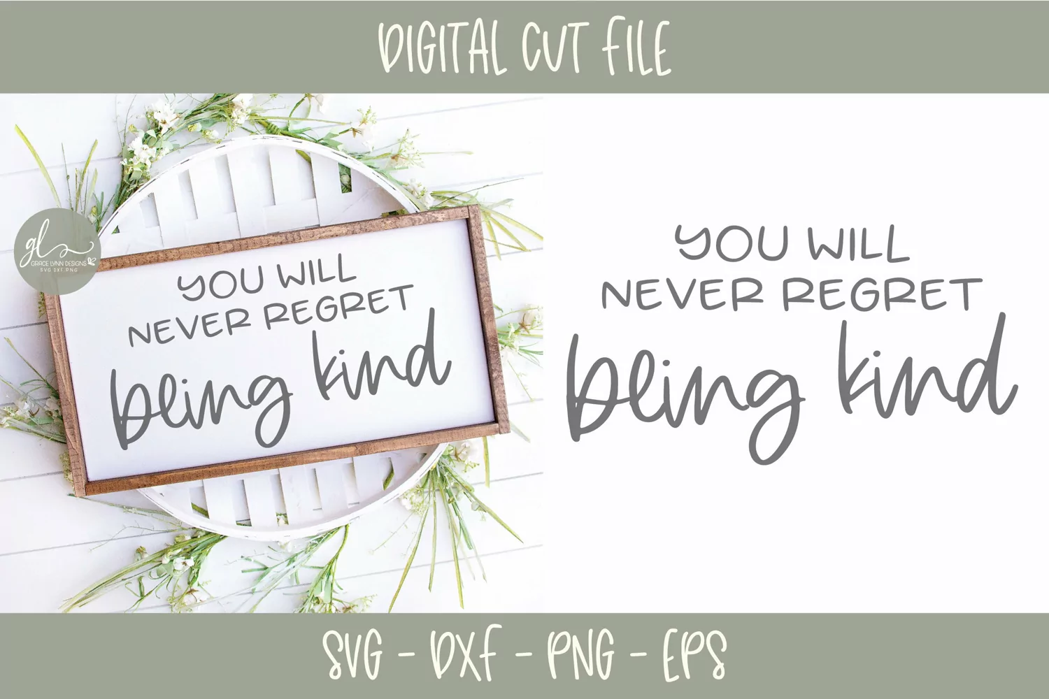 You Will Never Regret Being Kind - Digital Cut File - SVG, DXF, PNG & EPS