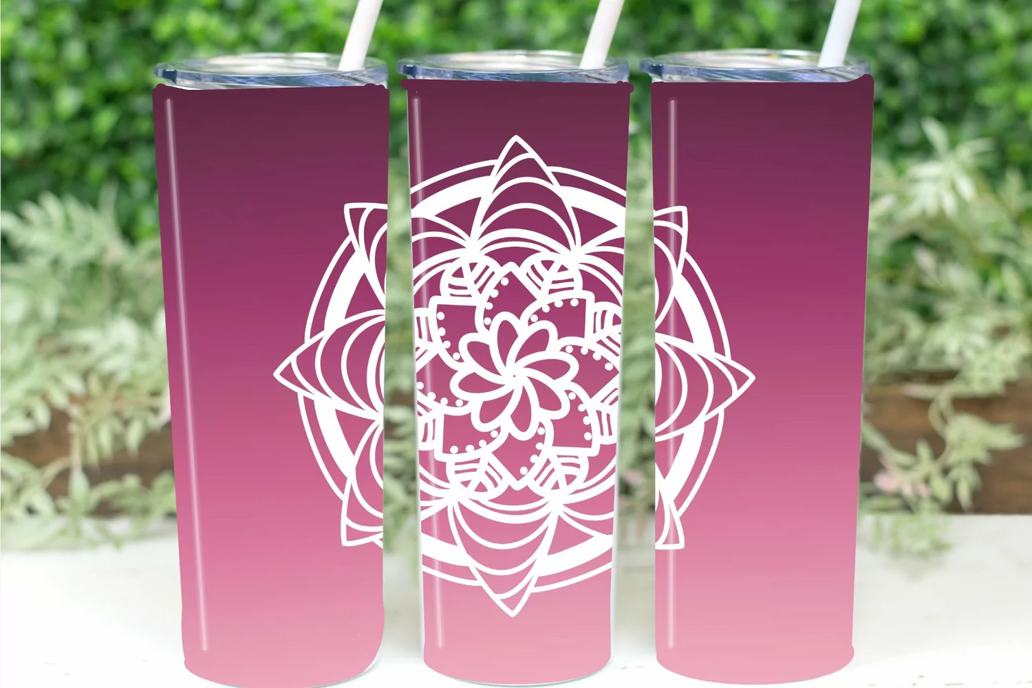 One original mandala on an ombre pink purple background skinny tumbler sublimation PNG