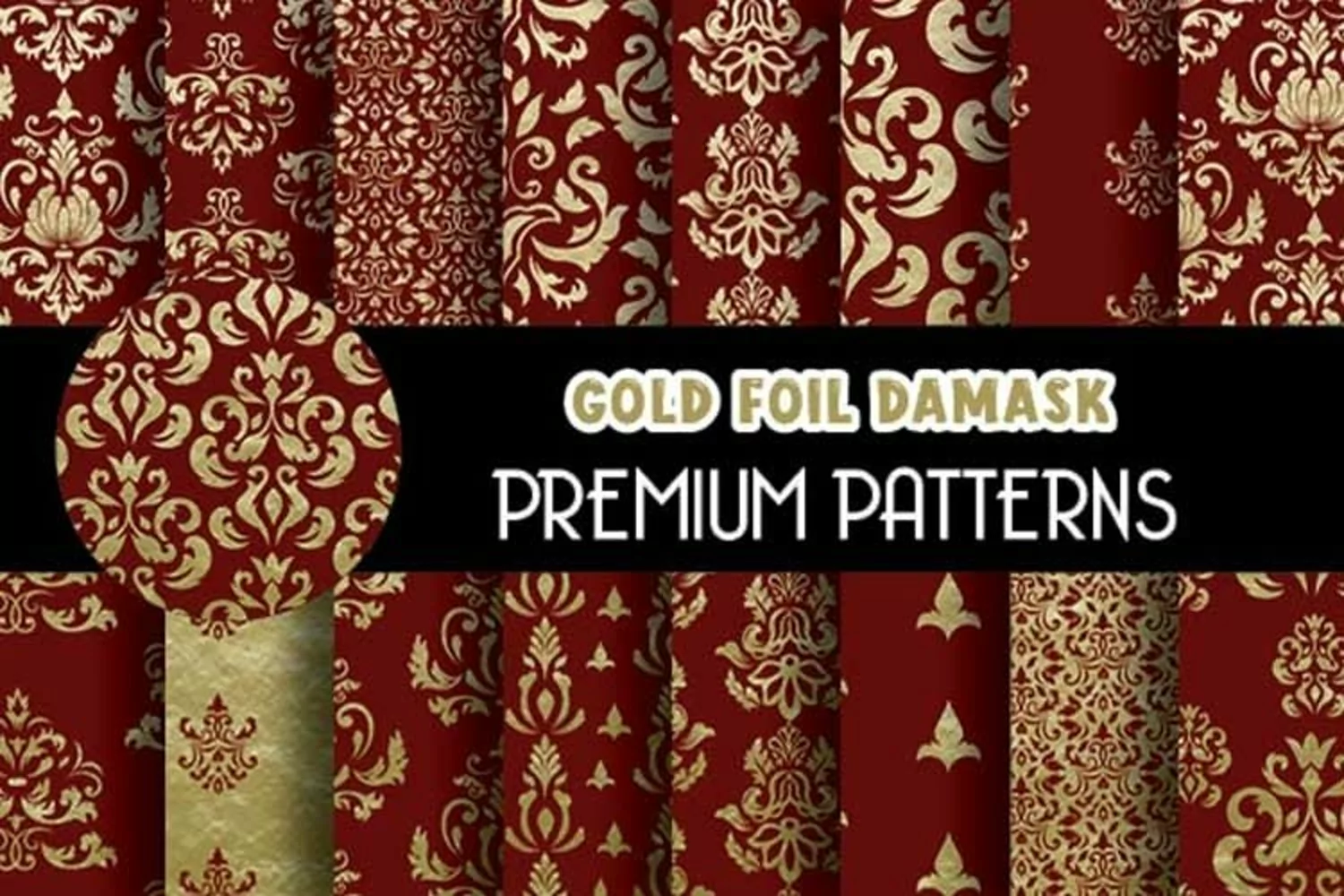 Royal Red Gold Foil Damask Patterns