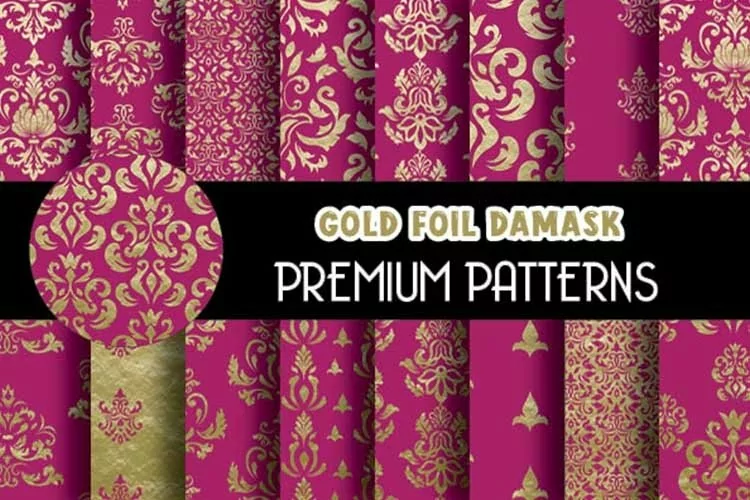 Royal Pink Gold Foil Damask Patterns