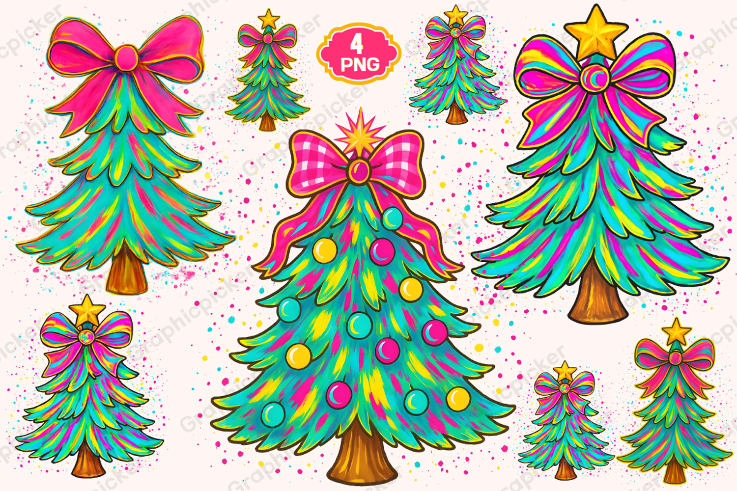 Similar Design Products to Colorful Coquette Pink Christmas Tree Merry and Bright Png