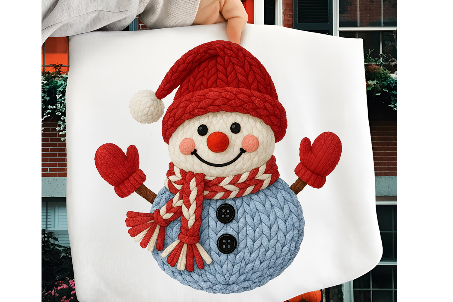 Christmas Faux Yarn Crochet Snowman PNG, Snowman PNG example image 1