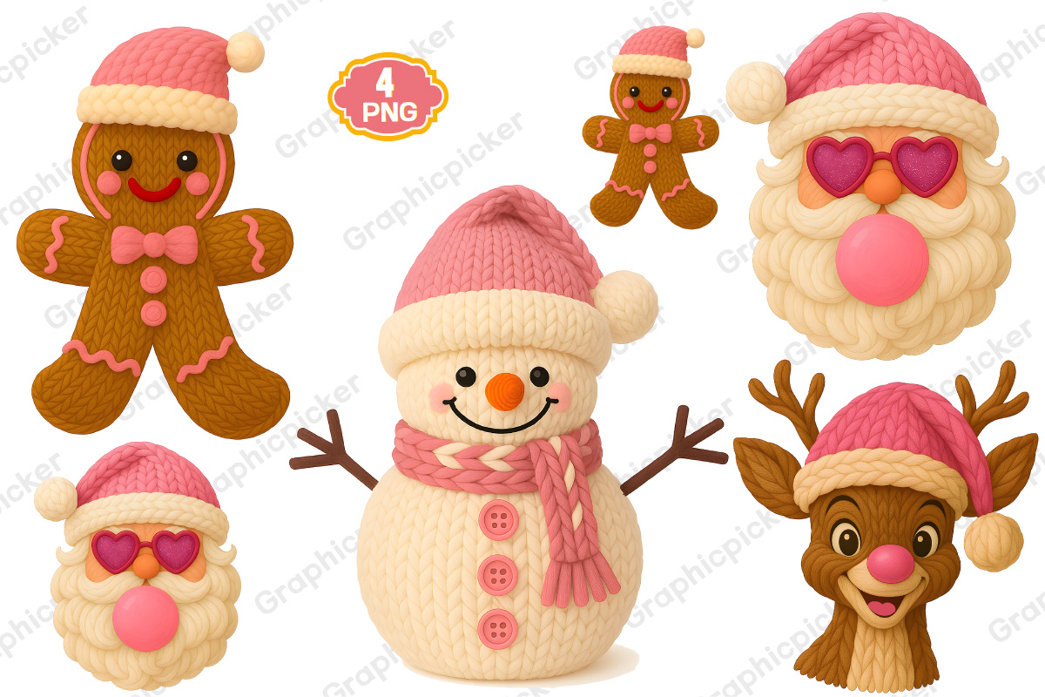 Pink Crochet Christmas PNG Bundle, Crochet Yarn Christmas