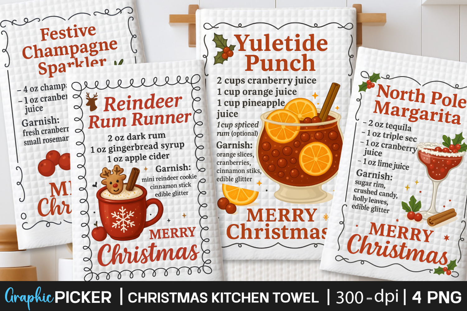 Christmas Kitchen Towel PNG, Christmas cocktail Recipe PNG