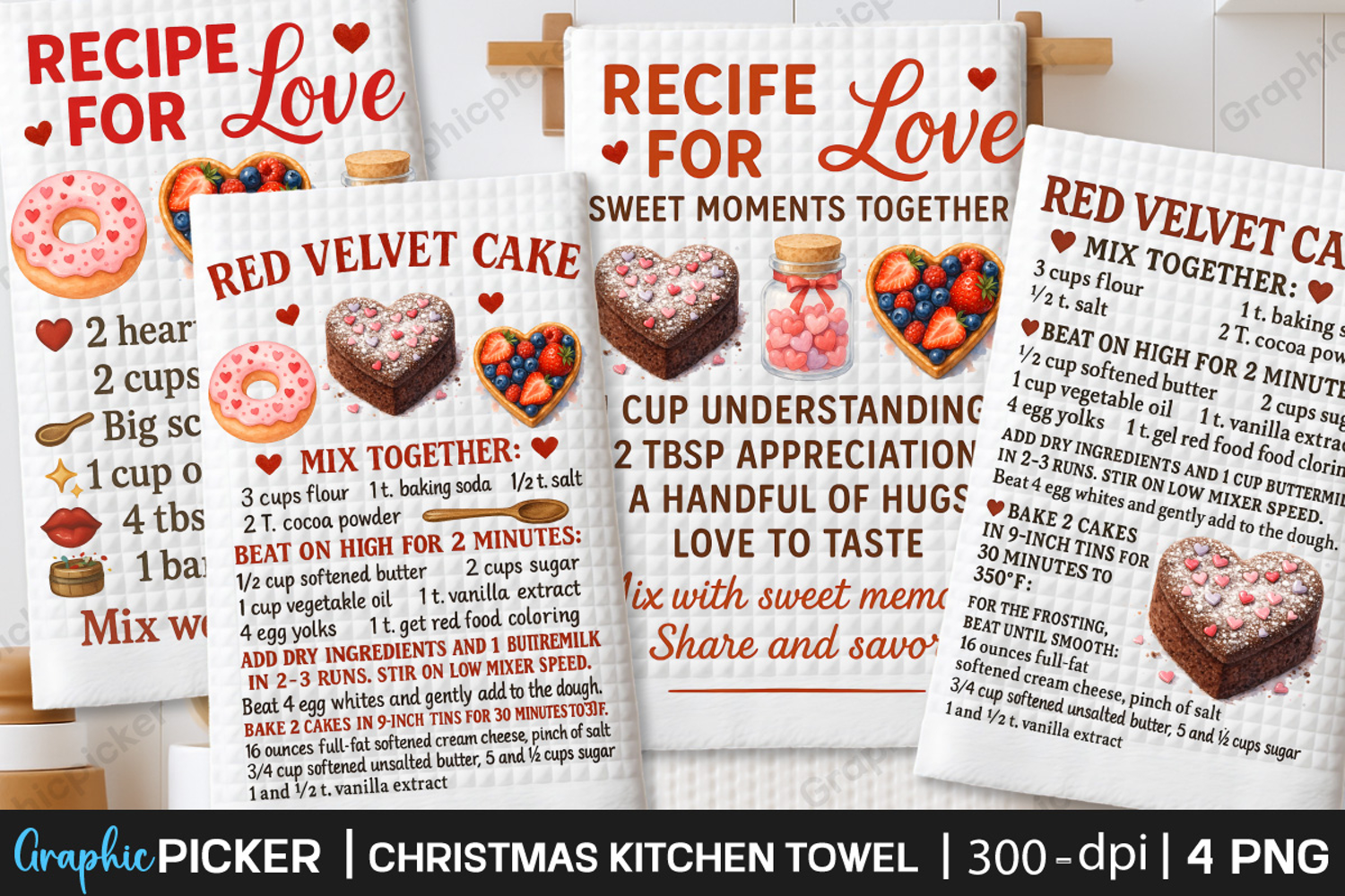Valentine Kitchen Towel PNG, Valentine day Sublimation, Love example image 1