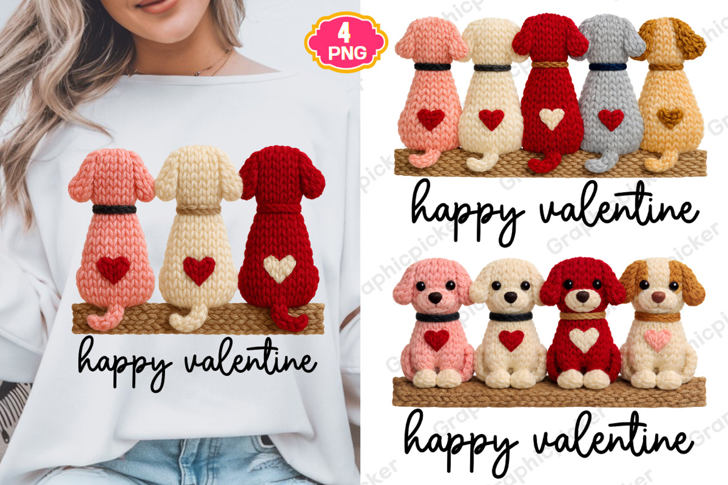 Valentine Dog PNG Clipart, Crochet Dogs with Hearts