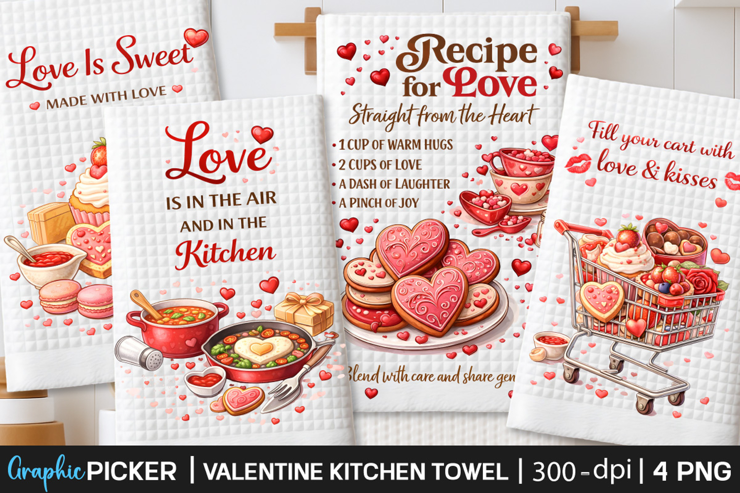 Valentine Kitchen Towel PNG, Valentine day Sublimation, Love example image 1