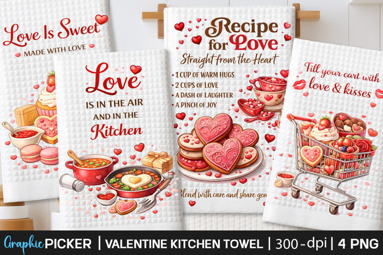 Valentine Kitchen Towel PNG, Valentine day Sublimation, Love