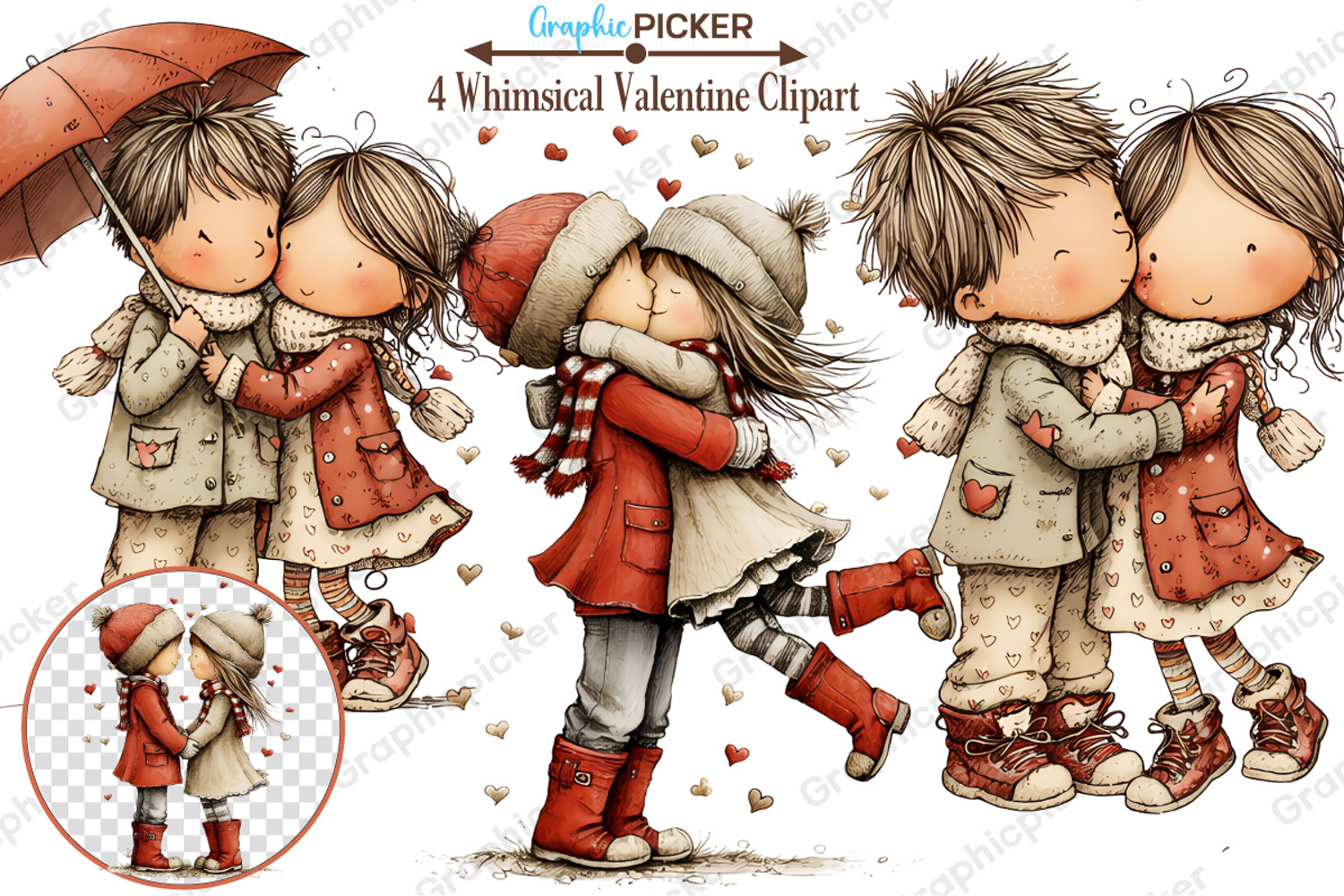 Whimsical Valentine Couple Clipart, Valentine's Day PNG
