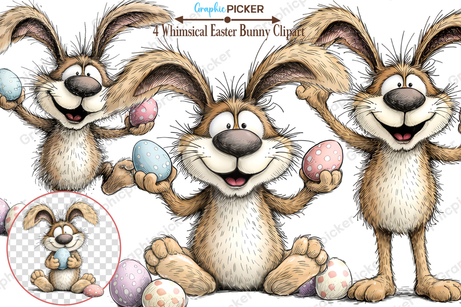Whimsical Bunny Easter Clipart, Watercolor Easter Bunny PNG