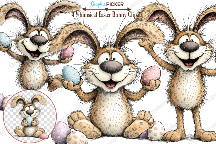 Similar Design Products to Whimsical Bunny Easter Clipart, Watercolor Easter Bunny PNG