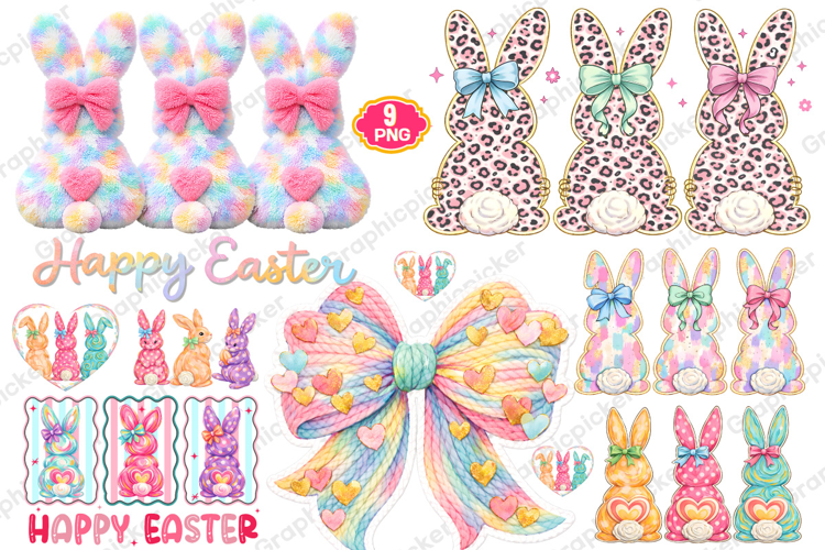 Happy Easter PNG Coquette Easter Bunny, Faux yarn Bunny PNG example image 1