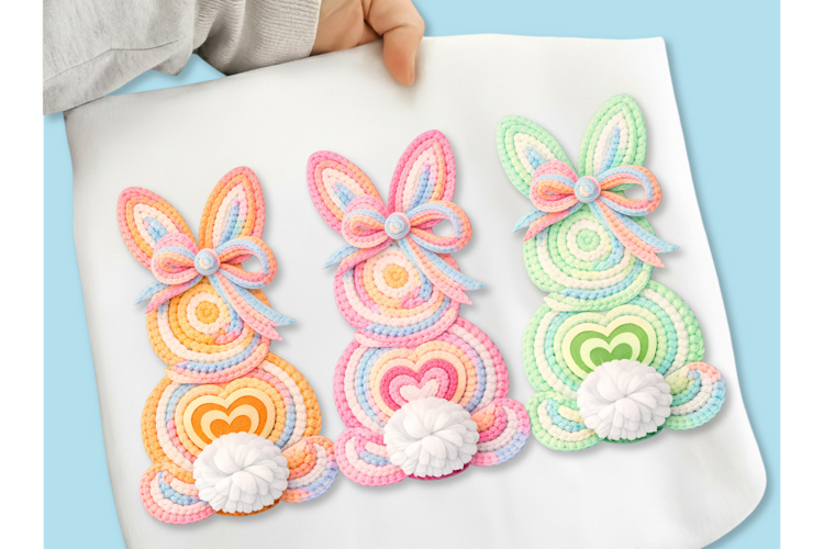Happy Easter PNG Coquette Easter Bunny, Faux yarn Bunny PNG example image 1