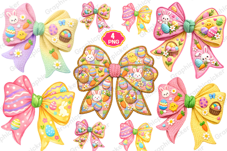Faux Yarn Crochet Easter Coquette Bow PNG, Happy Easter PNG example image 1