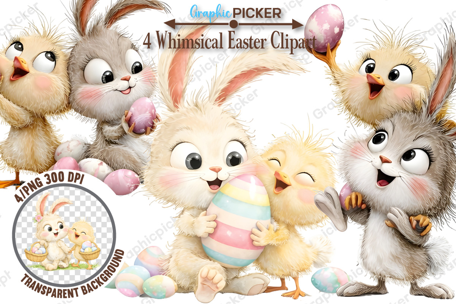 Whimsical Easter Chick Clipart, Watercolor Easter Clipart
