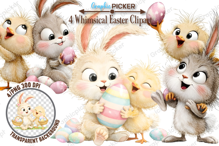 Similar Design Products to Whimsical Easter Animals PNG, Whimsical Bunny Easter Clipart