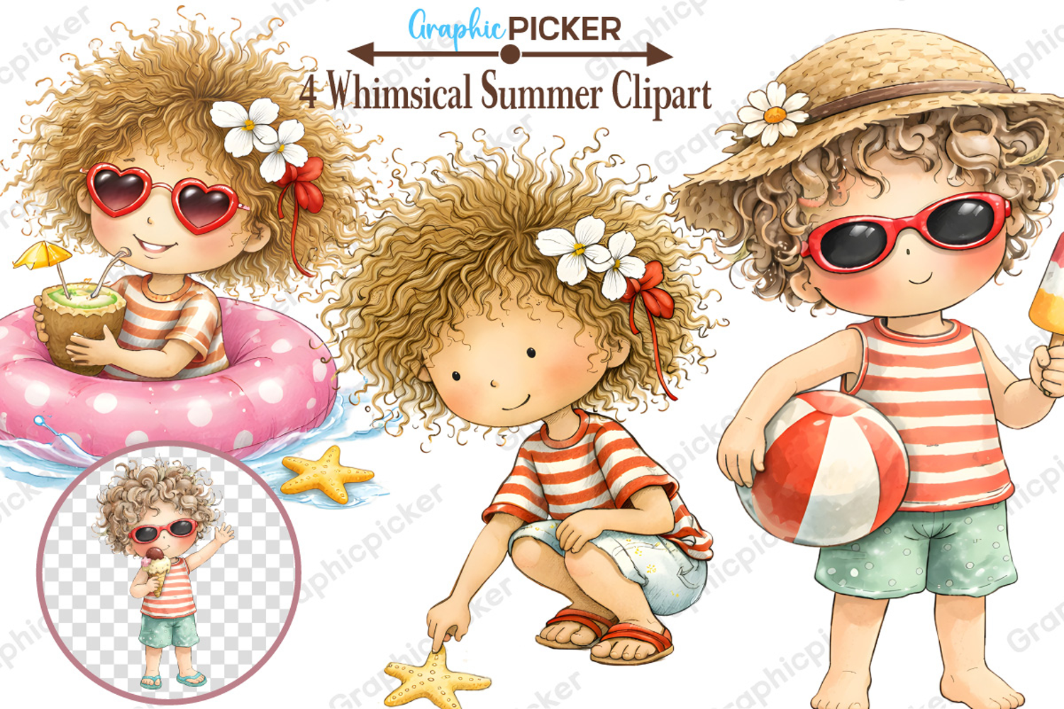 Similar Design Products to Whimsical Summer Boys Clipart, Whimsical Summer Clipart