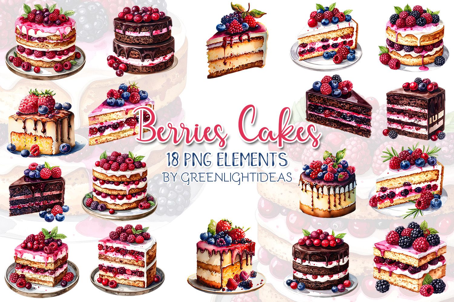 Similar Design Products to Watercolor Berries Cakes Clipart, Raspberry Cakes Graphics