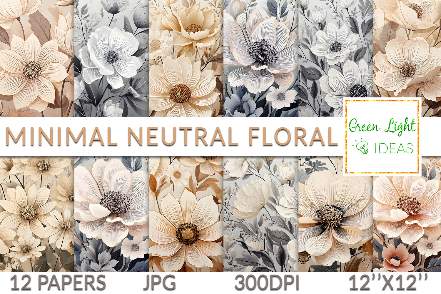 Minimal Neutral Flowers Digital Papers, Botanical Background