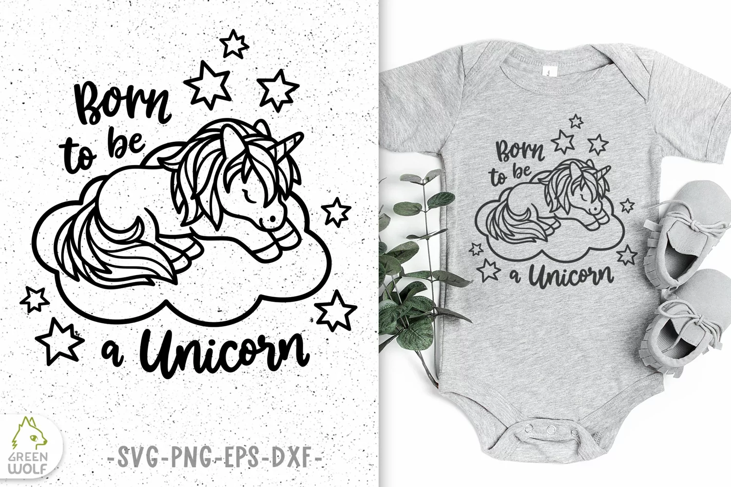 Sleeping unicorn and quote "Born to be a unicorn" - wonderful svg design for baby bodysuit, decal, poster and other nursery decor!