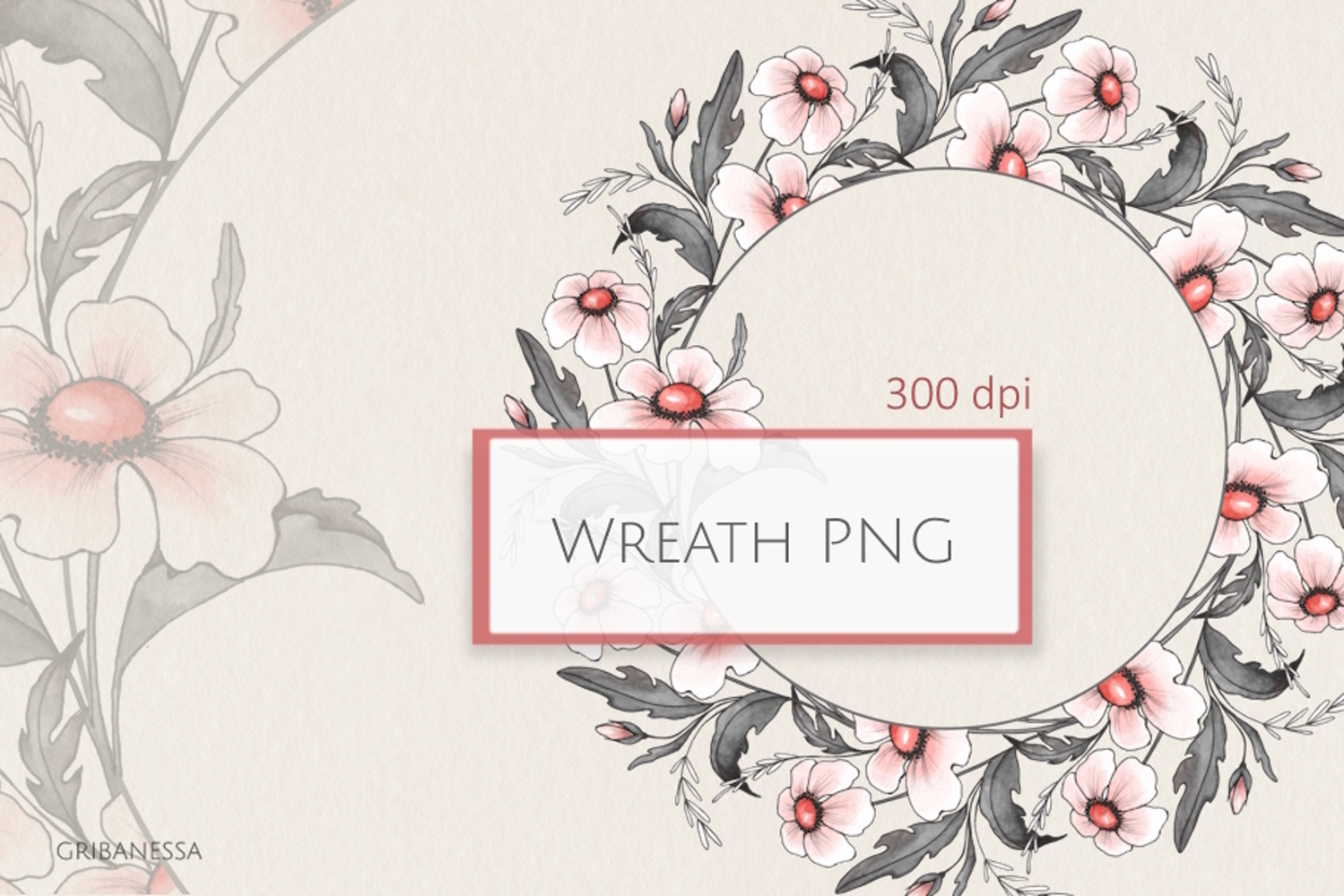 Similar Design Products to Ink Floral Wreath PNG Clipart