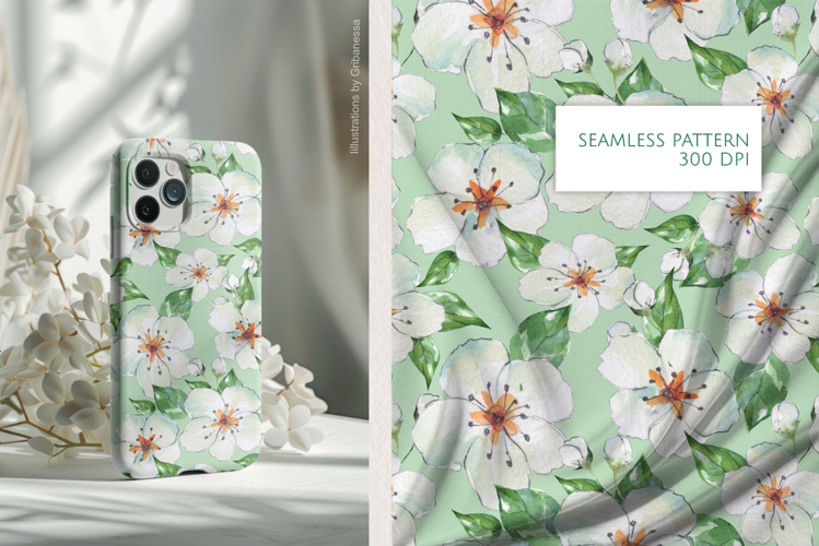 Similar Design Products to Watercolor White Spring Flowers Seamless Pattern