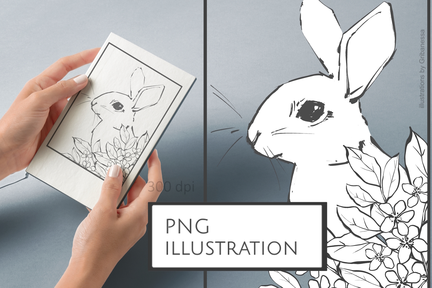 Minimalist Bunny Sketch Pre-made Card PNG example image 1
