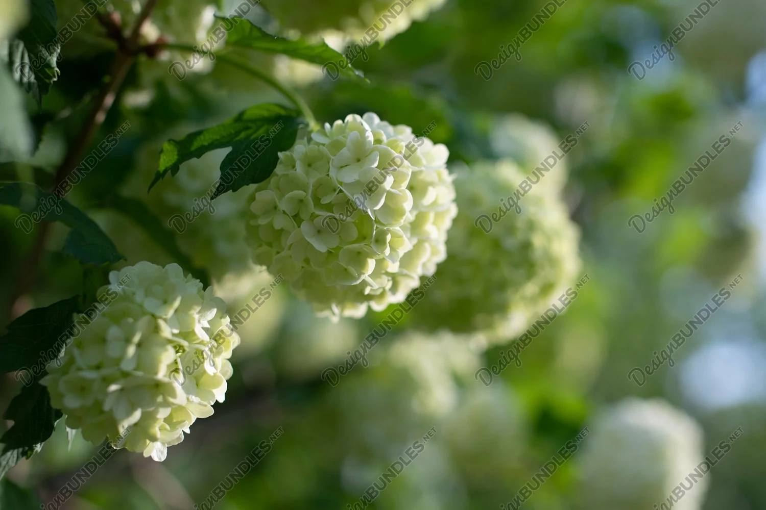 Stock Photo - Blooming viburnum buldenezh, white flowers example image 1