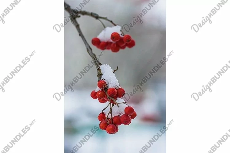 Stock Photo - Red berries of mountain ash under the snow example image 1