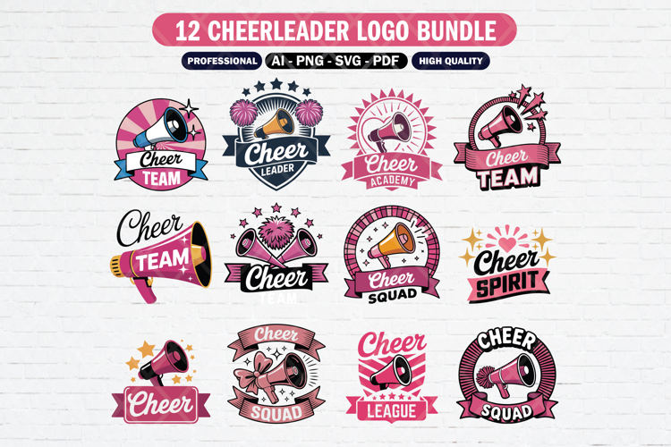 Get the crowd hyped with this 12 Cheerleader Clipart SVG Collection – perfect for football cheer squads, cheer team uniforms, Cricut crafts, or business branding. Featuring dynamic poses, pom-poms, and energetic silhouettes, this logo bundle will make your projects pop with spirit and pride!