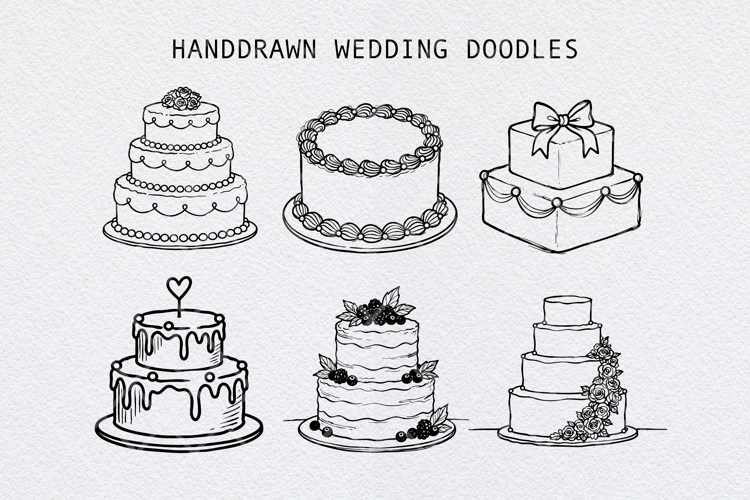 Hand Drawn Wedding Cake Doodles Bundle