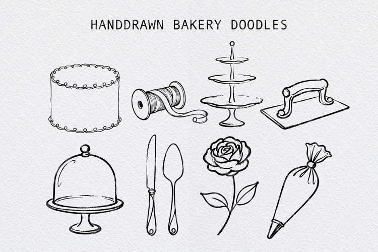 - 8 unique hand-drawn bakery illustrations