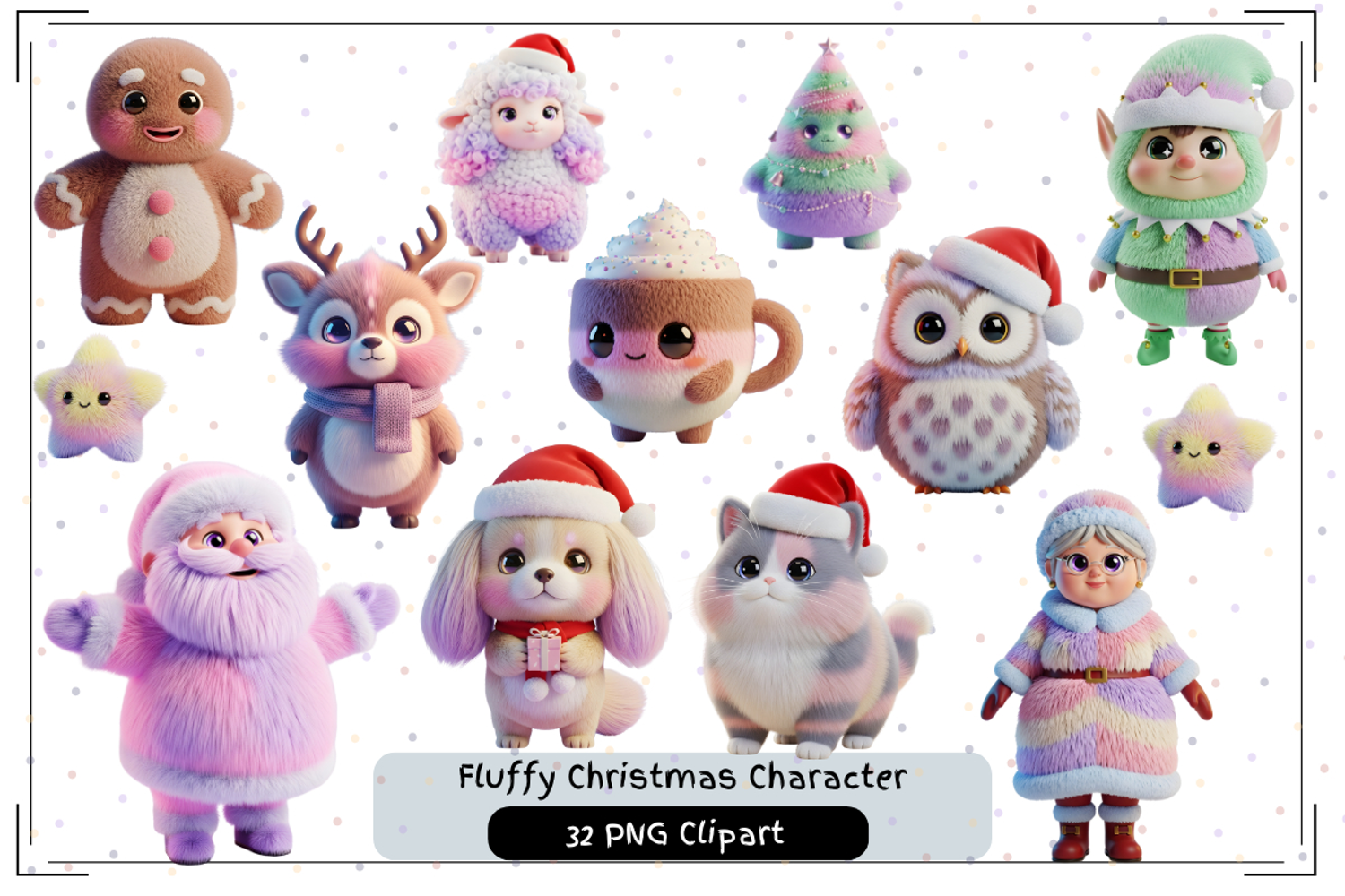 Bring adorable holiday magic to your designs with the Fluffy Christmas Character Bundle!