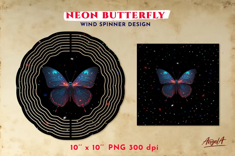 Neon Butterfly Wind spinner sublimation design with Neon Magic Sparkling Butterfly will perfect as decor of your house and as outdoor decoration.