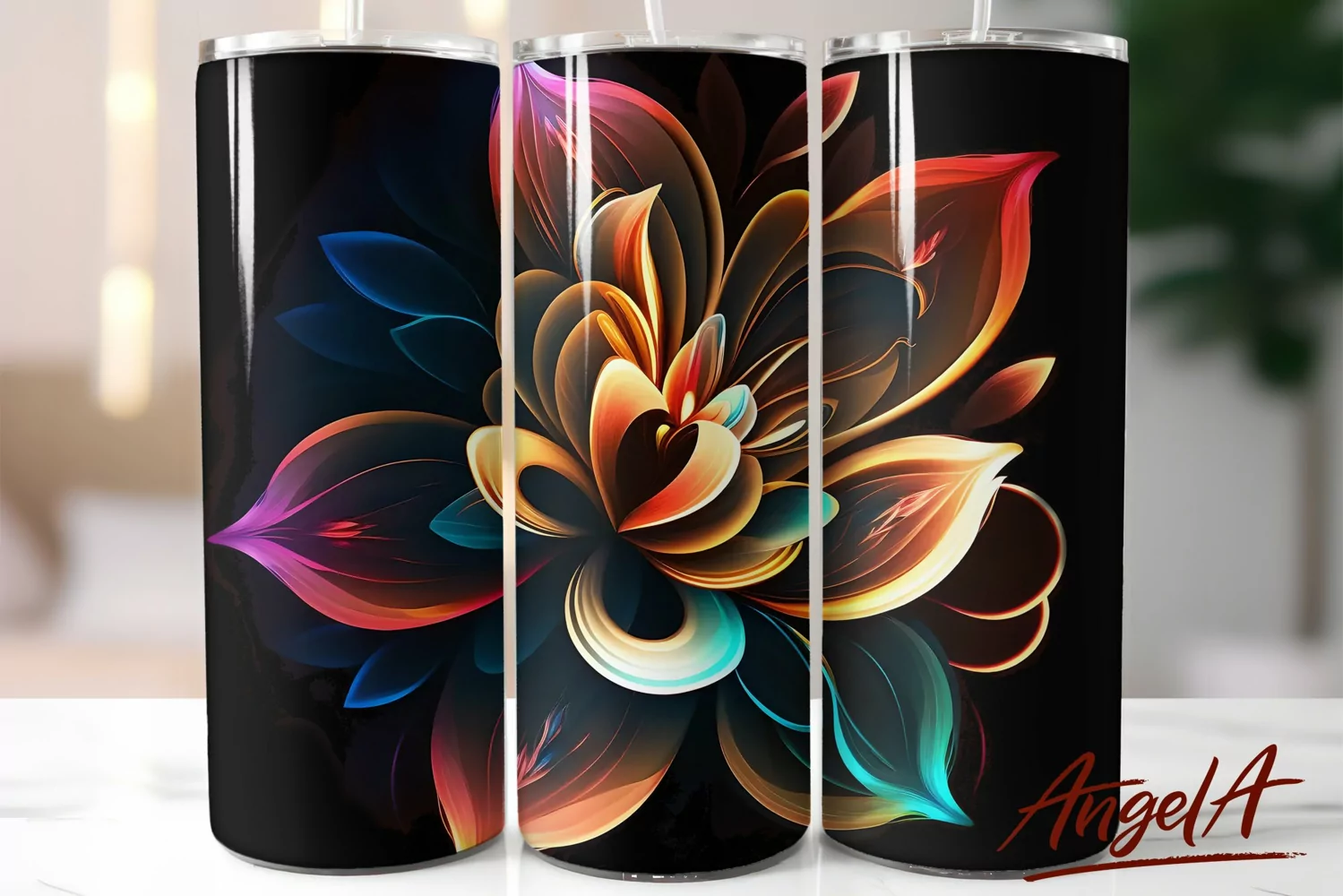 Neon tumbler wrap will help you spice up your tumbler! This tumbler design is 20 oz sublimation tumbler wrap with abstract neon flower on black background. This black tumbler wrap perfect as a part of the decor of your party!