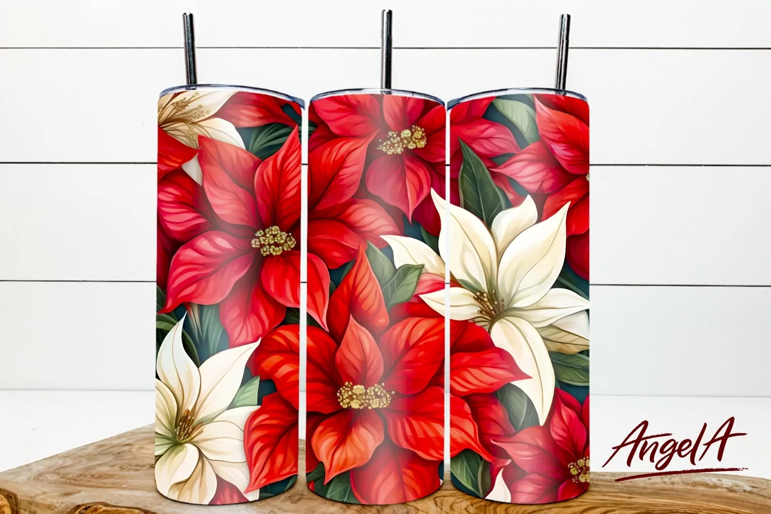 poinsettia flower tumbler sublimation / Christmas Tumbler example image 1