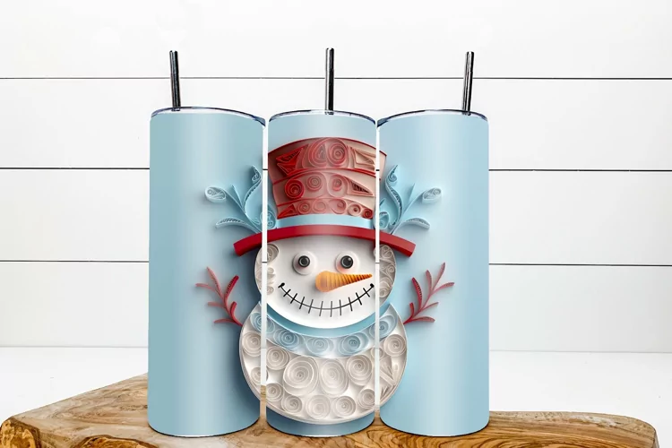 3d Christmas tumbler wrap / 3d snowman quilling sublimation