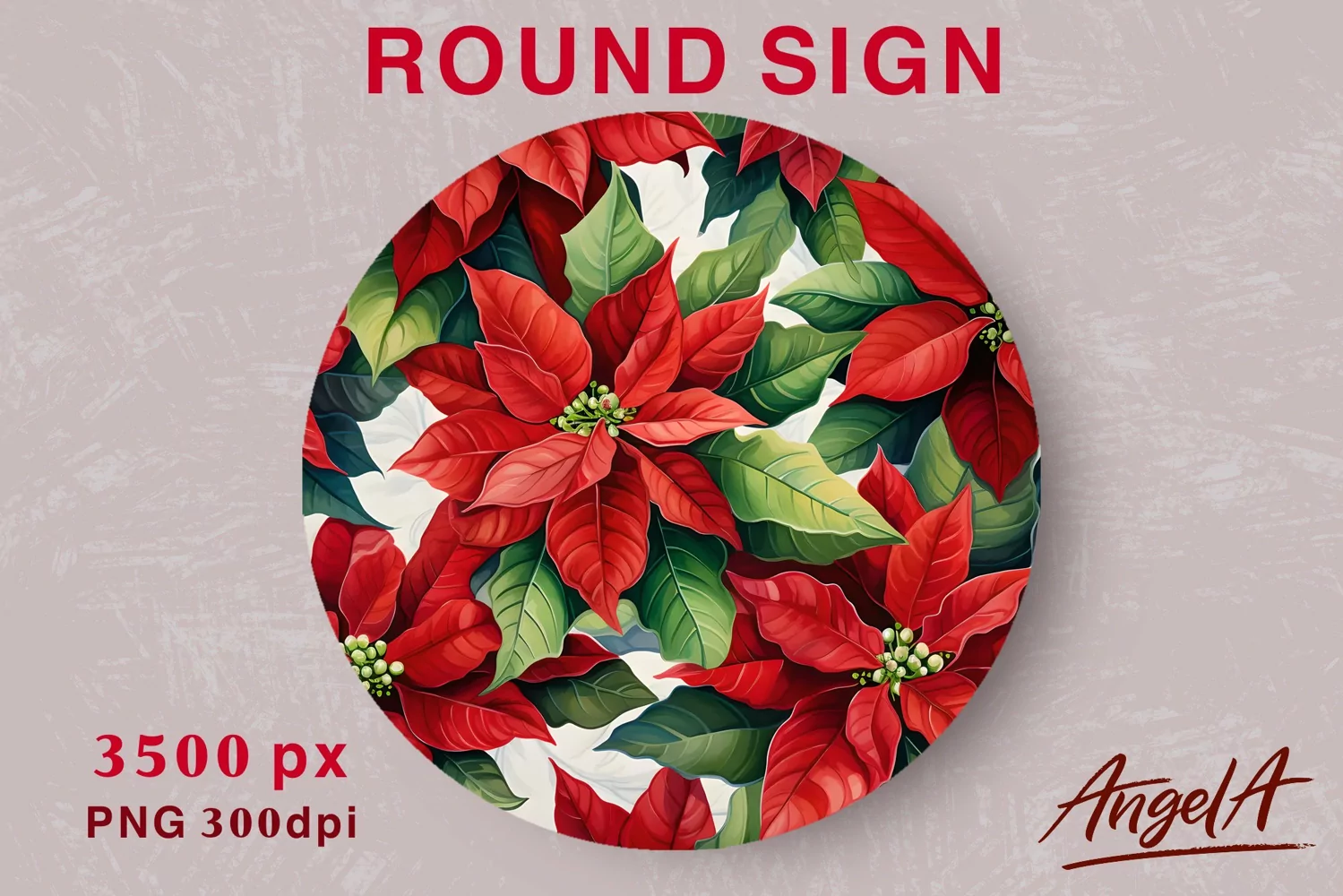Christmas poinsettia pattern / flower round sublimation