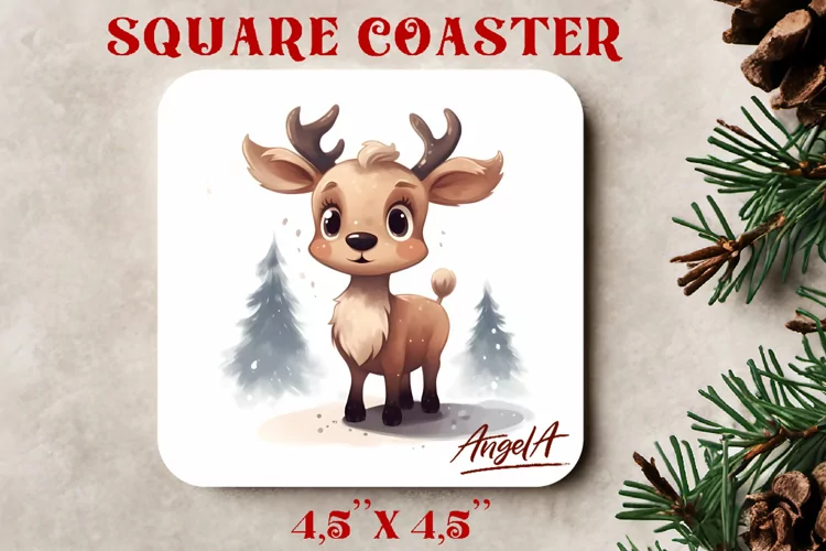 Drink Coaster Christmas Deer Watercolor Deer Baby Deer Coaster Sublimation Designs Watercolor Coaster Christmas Coaster Sublimation Square Coaster Sublimation Square Coasters Designs Square Christmas Coasters