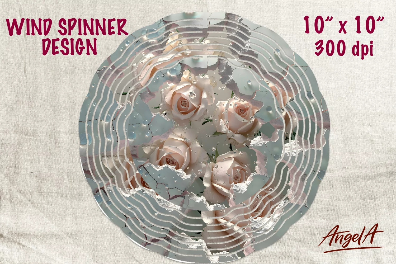Flower wind spinner sublimation design will perfect as decor of your house and as outdoor decorations! This is a wind spinner sublimation design of field of flowers, pink roses with water drop ion broken wall.