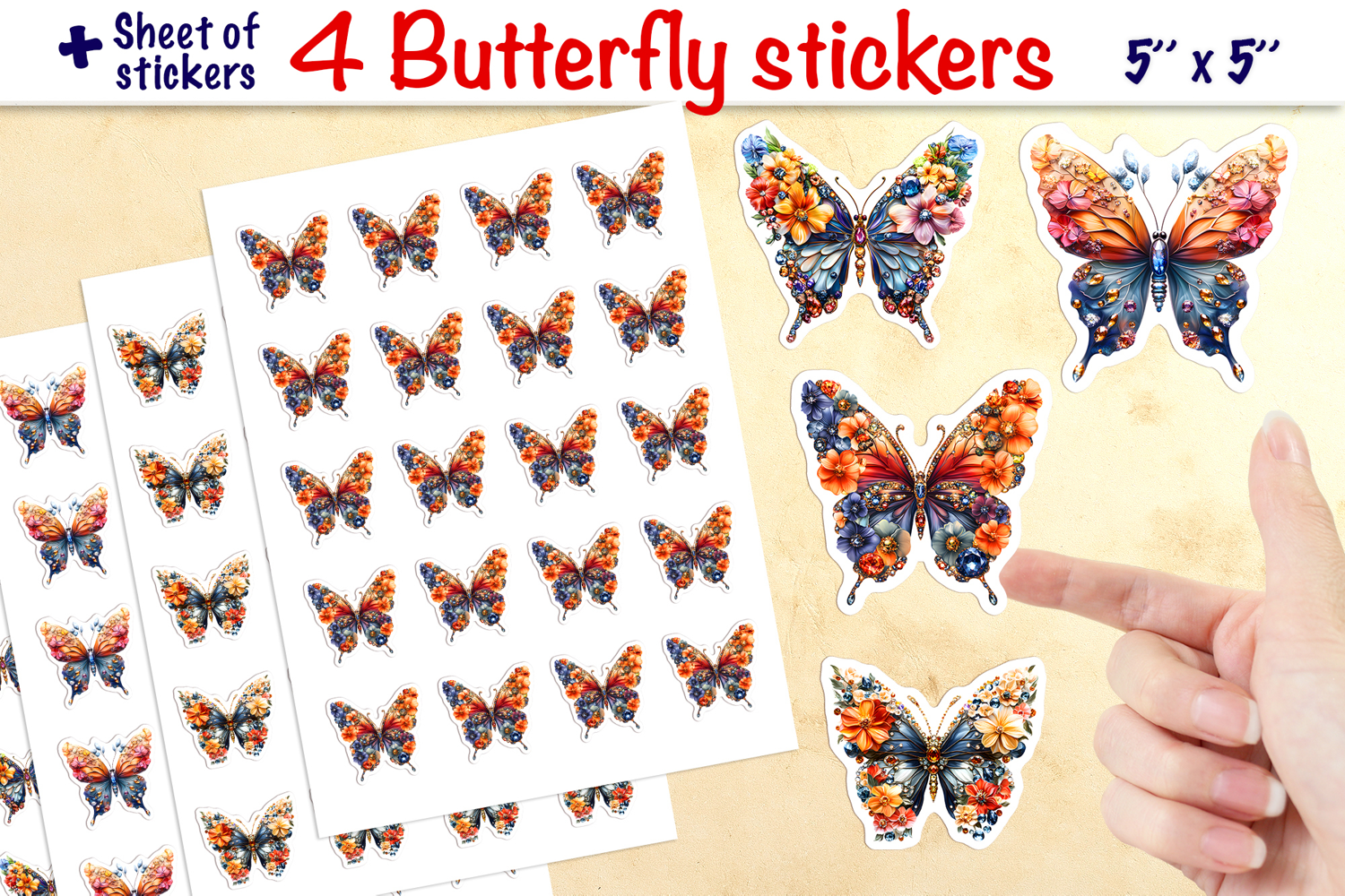 Floral sticker is a design of beautiful butterfly with flowers and gemstones.