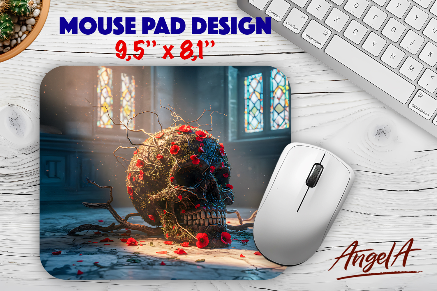 Fantasy mouse pad template is mouse pad sublimation design with a 3d flower skull in gothic castle.