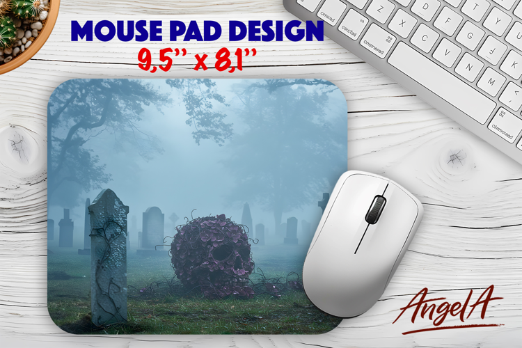 Halloween Skull Mouse pad sublimation cemetery with graves example image 1