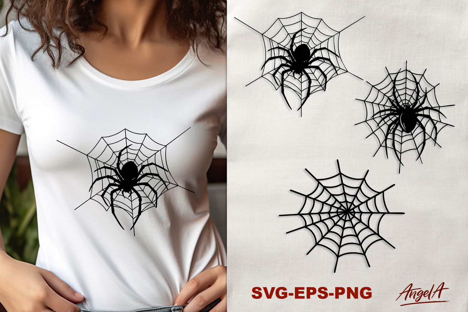 Similar Design Products to Spider web SVG, Silhouette of spider Halloween clipart PNG