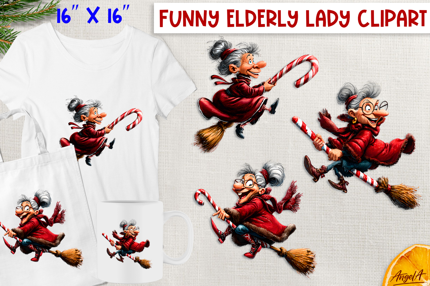 Christmas Clipart Christmas Ornaments Clipart Merry Christmas Clipart Funny Grandma Funny Christmas Png Grandma Clipart Christmas T Shirt Sublimation Old Lady Clipart Funny Elderly Woman Clipart Funny Witch On Broomstick Clipart